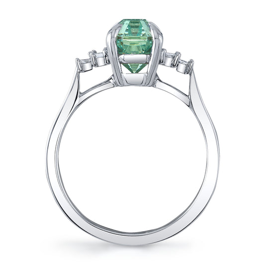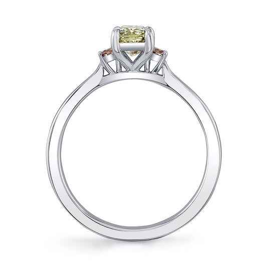 GIA Fancy Greyish Yellowish Green VS2 Diamond Three Stone Ring
