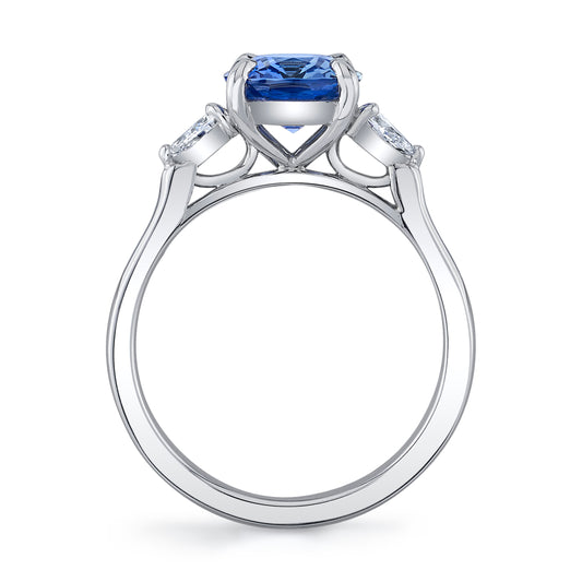 GIA No Heat Ceylon Sapphire Three Stone Ring
