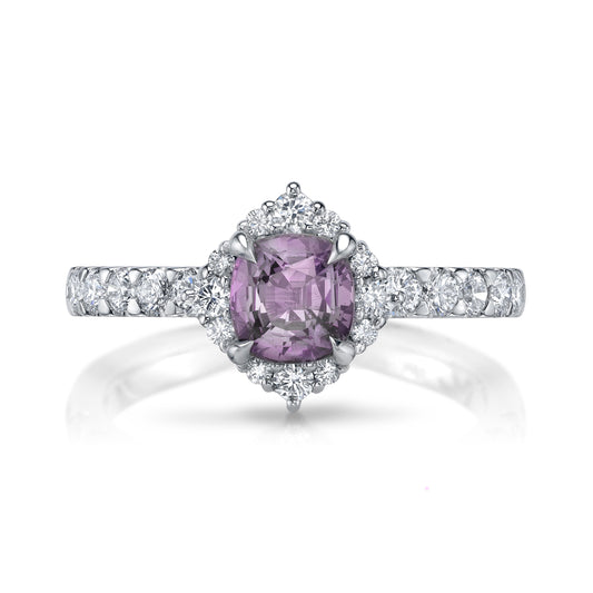 Untreated Burmese Spinel Ring with Pink Diamond Halo