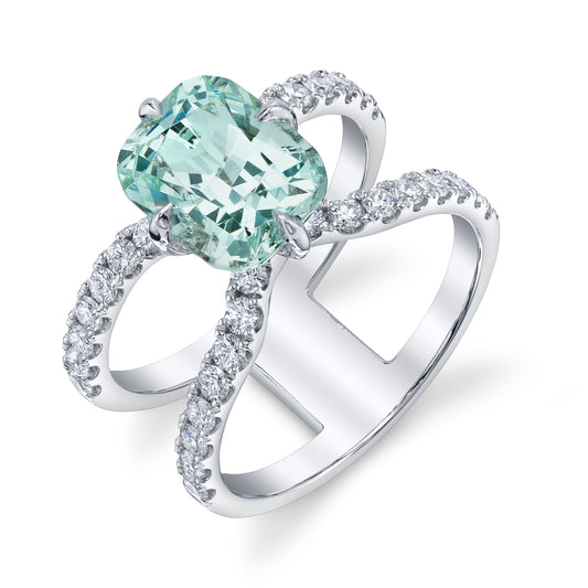 No Heat GIA Madagascar Light Bluish Green Sapphire Ring