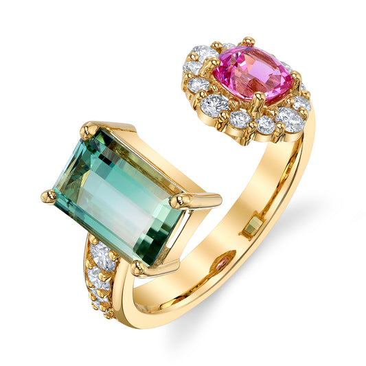 Untreated Bi-Color Tourmaline and No Heat Pink Sapphire Ring