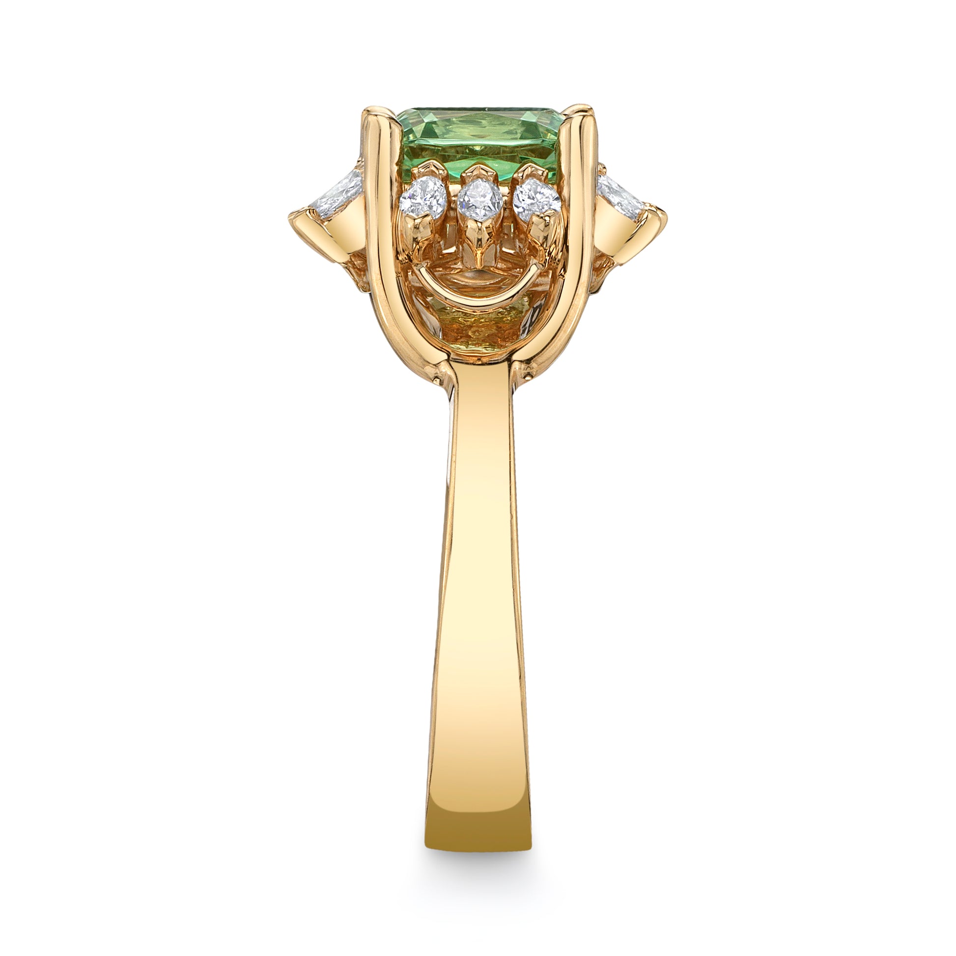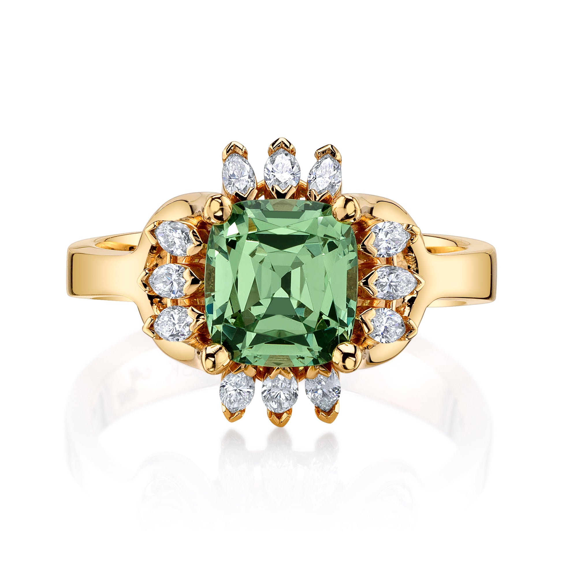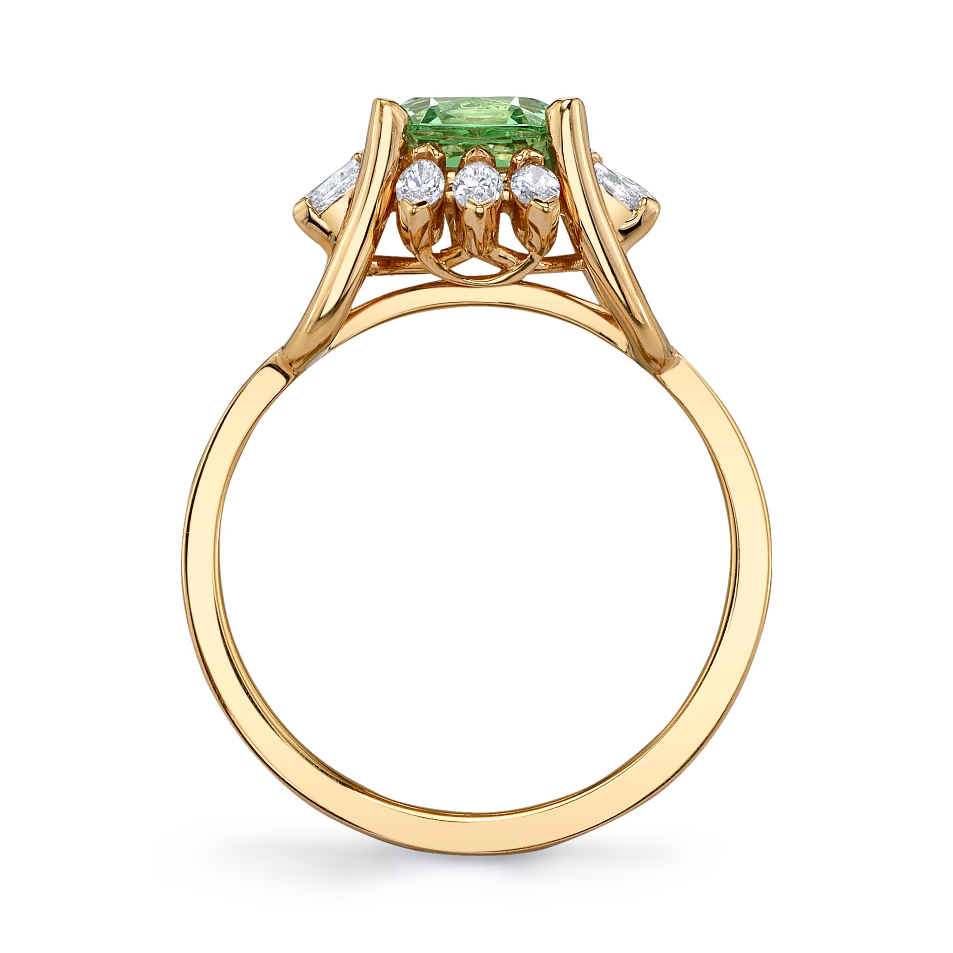 1.74ct Untreated Merelani Mint Green Garnet Ring in 18k rose gold with marquise diamond accents weighing 0.25cts.