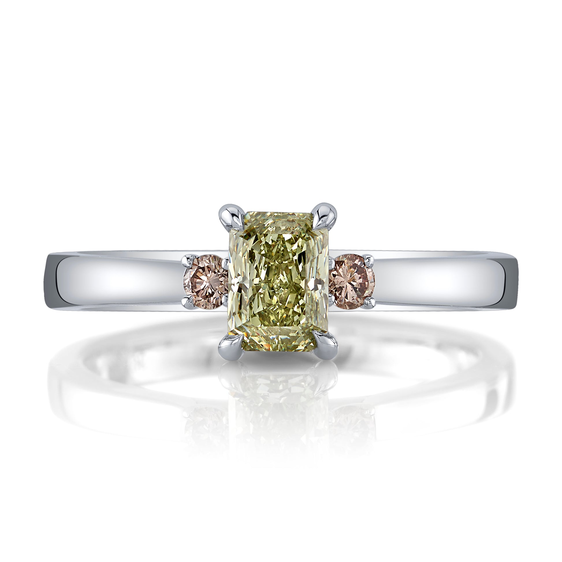 GIA Fancy Greyish Yellowish Green VS2 Diamond Three Stone Ring