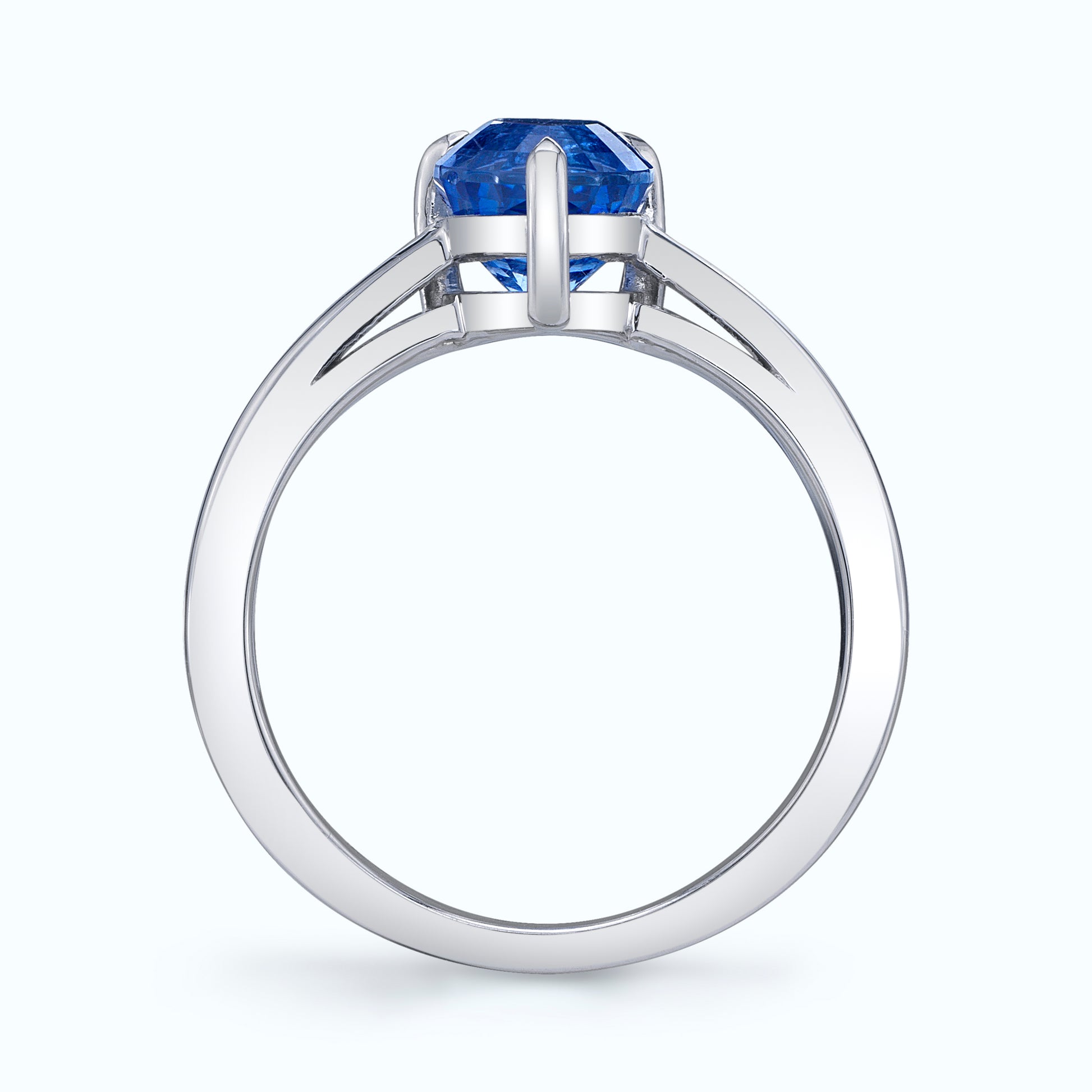 This ring exudes timeless class. The pear shape is masterfully cut, showcasing the even pure blue color throughout the gem without any zoning or windows. High quality untreated Burmese sapphires are very scarce, and this is no exception.
