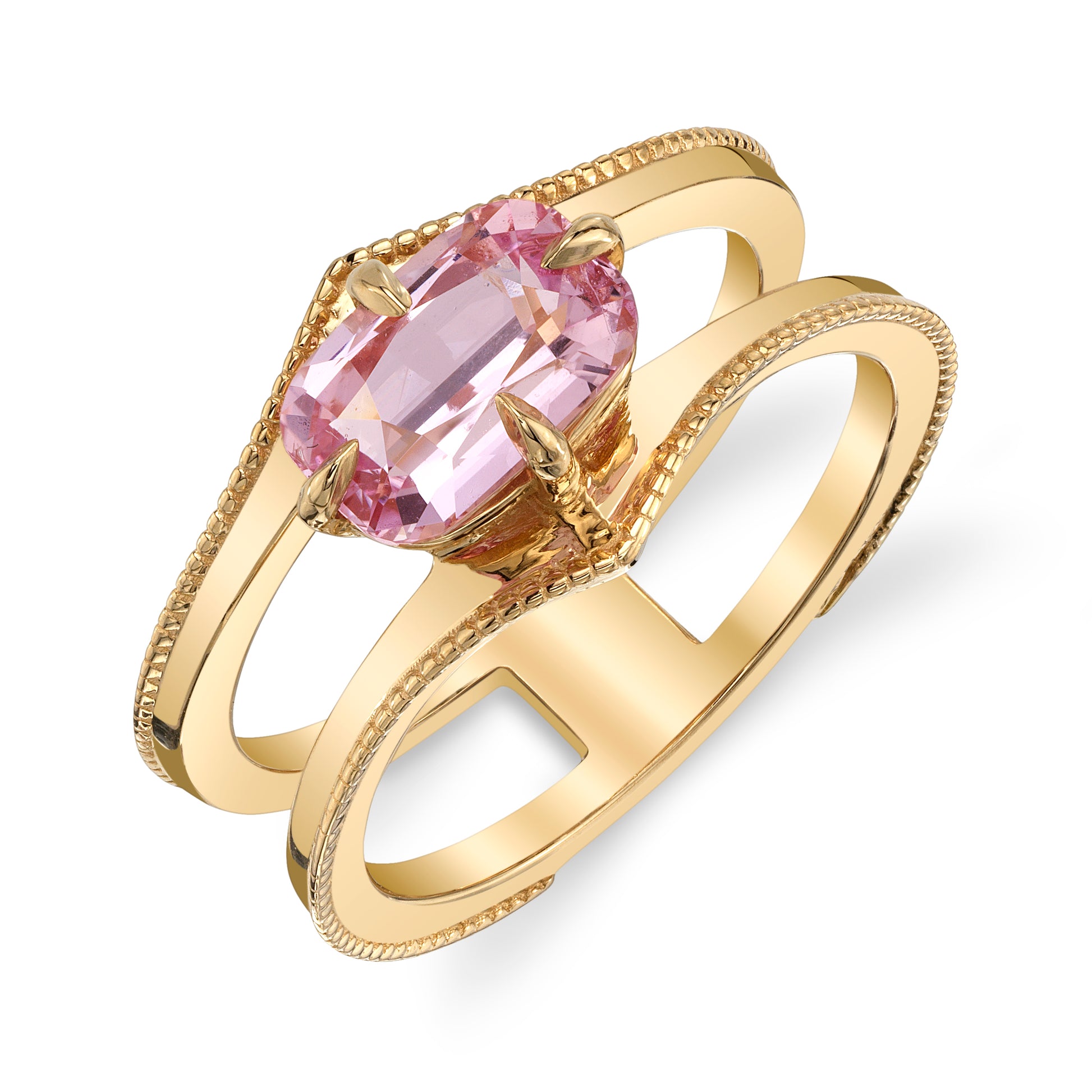 GIA No Heat Elongated Cushion Pink Sapphire Ring set in 18k yellow gold.